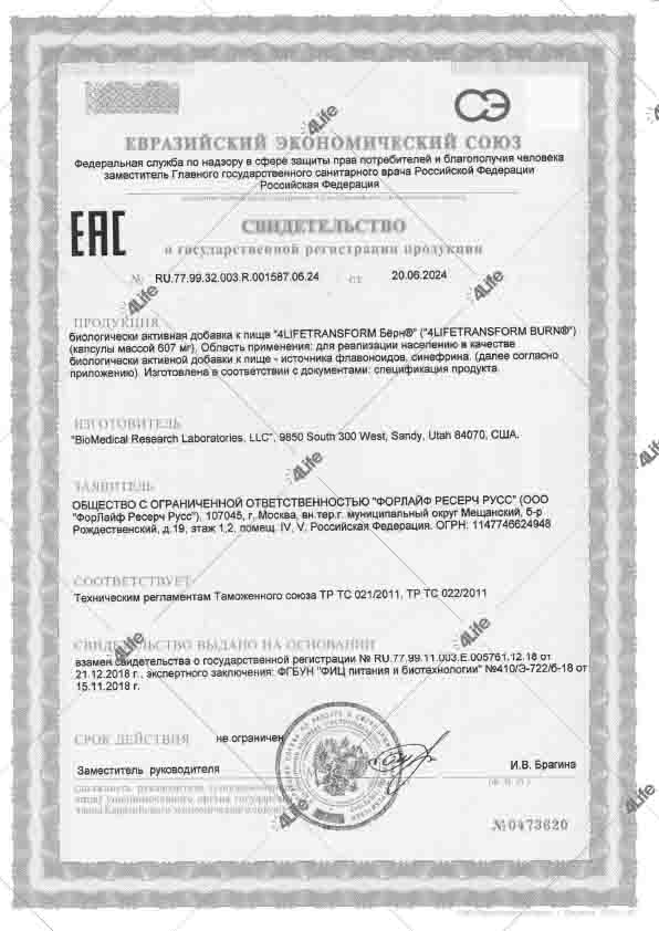 4LifeTransform Бёрн – фирменная термогенная смесь, которая способствует ускоренной трансформации тела. Ингредиенты, входящие в состав продукта, стимулируют сжигание жира в организме, придают энергию и бодрость во время выполнения физических тренировок, повышают чувство насыщения и мягко подавляют аппетит, не вызывая при этом перевозбуждения центральной нервной системы. 4LifeTransform Бёрн поддерживает сжигание жировых запасов в организме и управление весом; эффект усиливается в сочетании с физическими упражнениями и здоровым питанием. Вы добьетесь большего успеха на пути к здоровому, стройному и