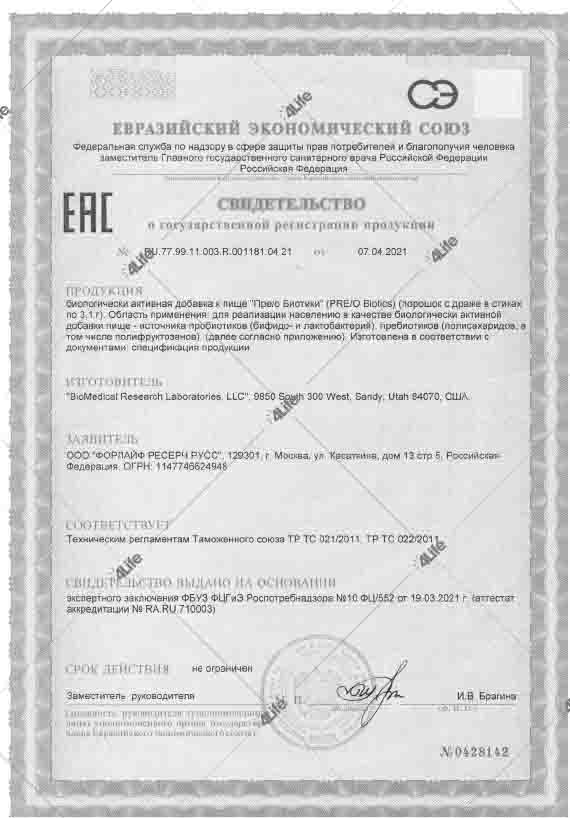 - Стимулирует рост пробиотиков, содержащихся в Пре/о Биотики, на 868% благодаря включению 4Life Трай-Фактор Формула*+